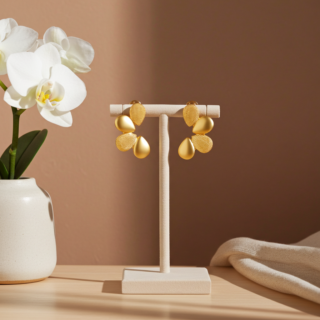 Embrace the beauty of nature with the Marina Earrings, a stunning piece from our exclusive jewelry collection. Designed to evoke the delicate elegance of blooming florals, these gold-plated earrings are the perfect accessory for those who appreciate femininity and timeless charm.